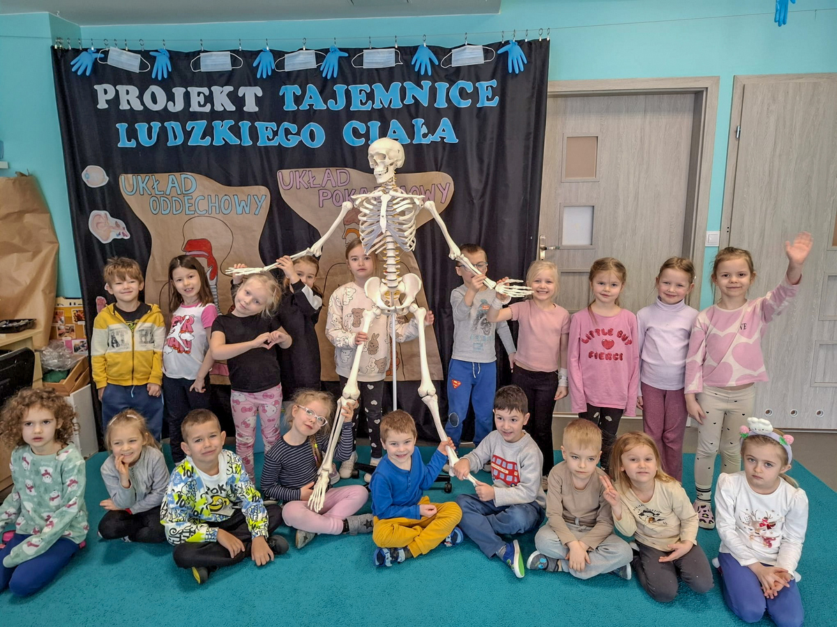 Nasza sala wypełniła się modelami narządów ludzkich, odwiedził nas nawet kościotrup, którego dzieci bardzo polubiły 🙂